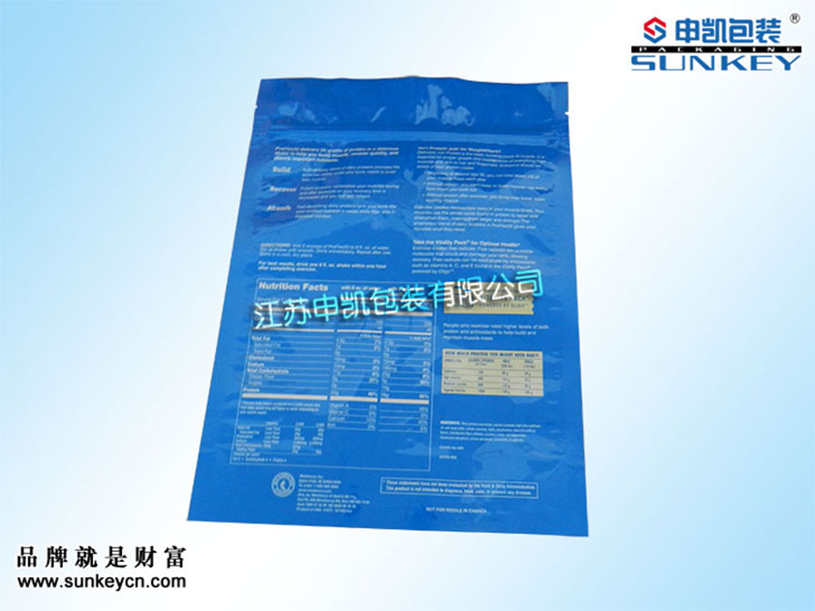 说明:彩印站立拉链铝箔袋材质一般是由PET/AL/PE组成,经过印刷-检品-复合-制袋等多层工艺。