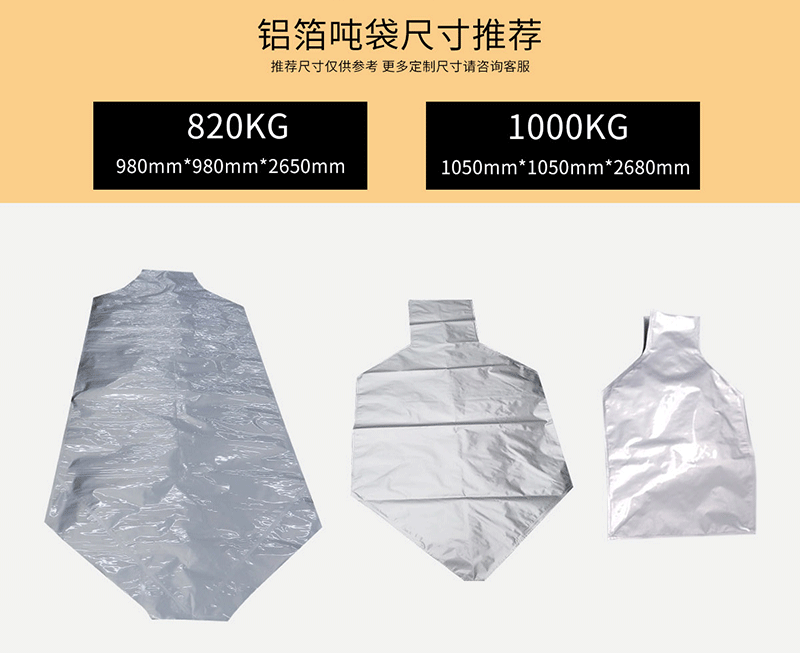 吨袋铝箔袋常用规格推荐: